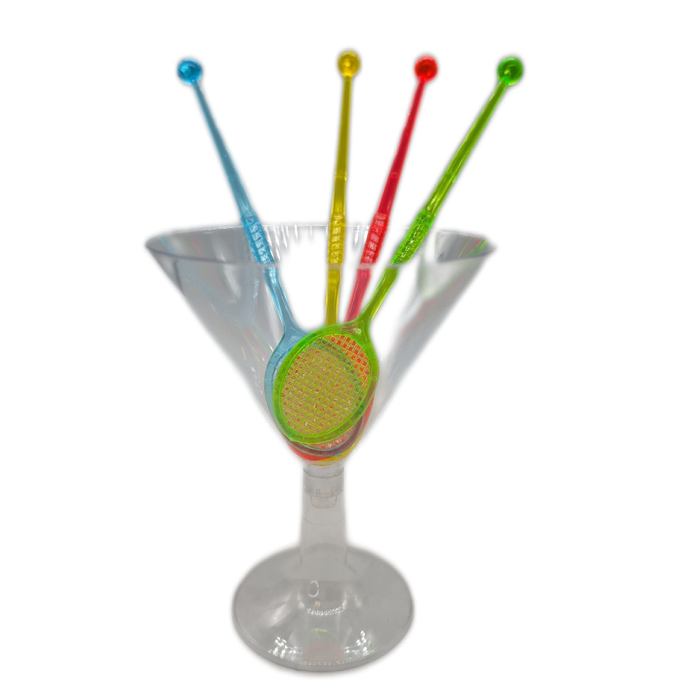 Mit diesen bunten Tennisschläger-Rührern (160 mm) in den Farben Blau, Rot, Gelb und Grün verleihen Sie Cocktails und Getränken eine spielerische Note. Die Schläger haben eine Größe von 30x40 mm und eignen sich perfekt für Bars, Partys, Veranstaltungen und mehr. Erwecken Sie Ihre Getränke mit einem Hauch von Sportlichkeit zum Leben!