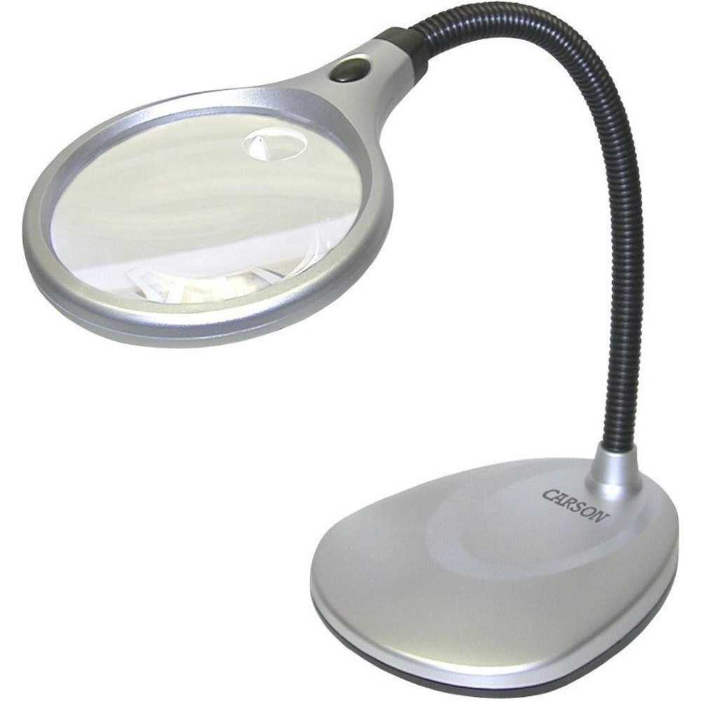 Carson DeskBrite™ 200 Tisch-Lupenlampe mit 2x Vergrößerung und 6x Spotlinse. Flexible Positionierung, helle LEDs, Netz- & Batteriebetrieb. Benötigt 3x AA Batterien nicht im Lieferumfang enthalten. Zustand: Leichte Kratzer an der Lupe und Aussenkarton eingedrückt und netzteil fehlt.