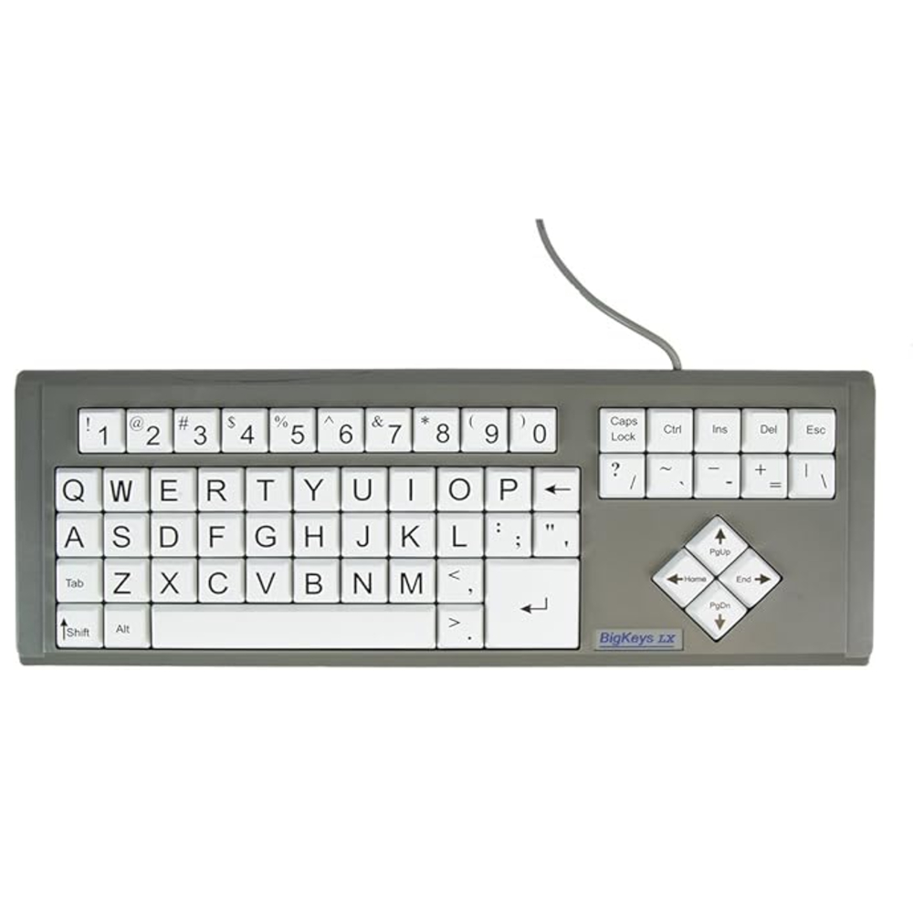 Die Keytools BIG KEYS LX Großschrift-Tastatur in Weiß ist die perfekte Lösung für Benutzer, die eine klare und leicht lesbare Tastatur benötigen. Mit ihren extra großen Tasten ist sie besonders benutzerfreundlich und ideal für Menschen mit eingeschränkter Sehkraft oder Senioren. Jede Taste der Tastatur ist mit auffälliger, fetter Beschriftung versehen, die eine exzellente Sichtbarkeit gewährleistet. Dank der gut strukturierten Tastenanordnung und der angenehmen Haptik wird das Tippen zum Kinderspiel. Der weiße Hintergrund sorgt für einen modernen Look und unterstützt eine hohe Kontrastreichtum in Verbindung mit der schwarzen Schrift. Die Tastatur ist kompatibel mit Windows-PCs und eignet sich sowohl für den Heimgebrauch als auch für den Einsatz im Büro oder in Bildungseinrichtungen. Sie bietet eine zuverlässige und komfortable Schreibumgebung, die langanhaltenden Komfort und Ergonomie fördert. Ein tolles Hilfsmittel für alle, die eine größere Lesbarkeit und Benutzerfreundlichkeit wünschen.