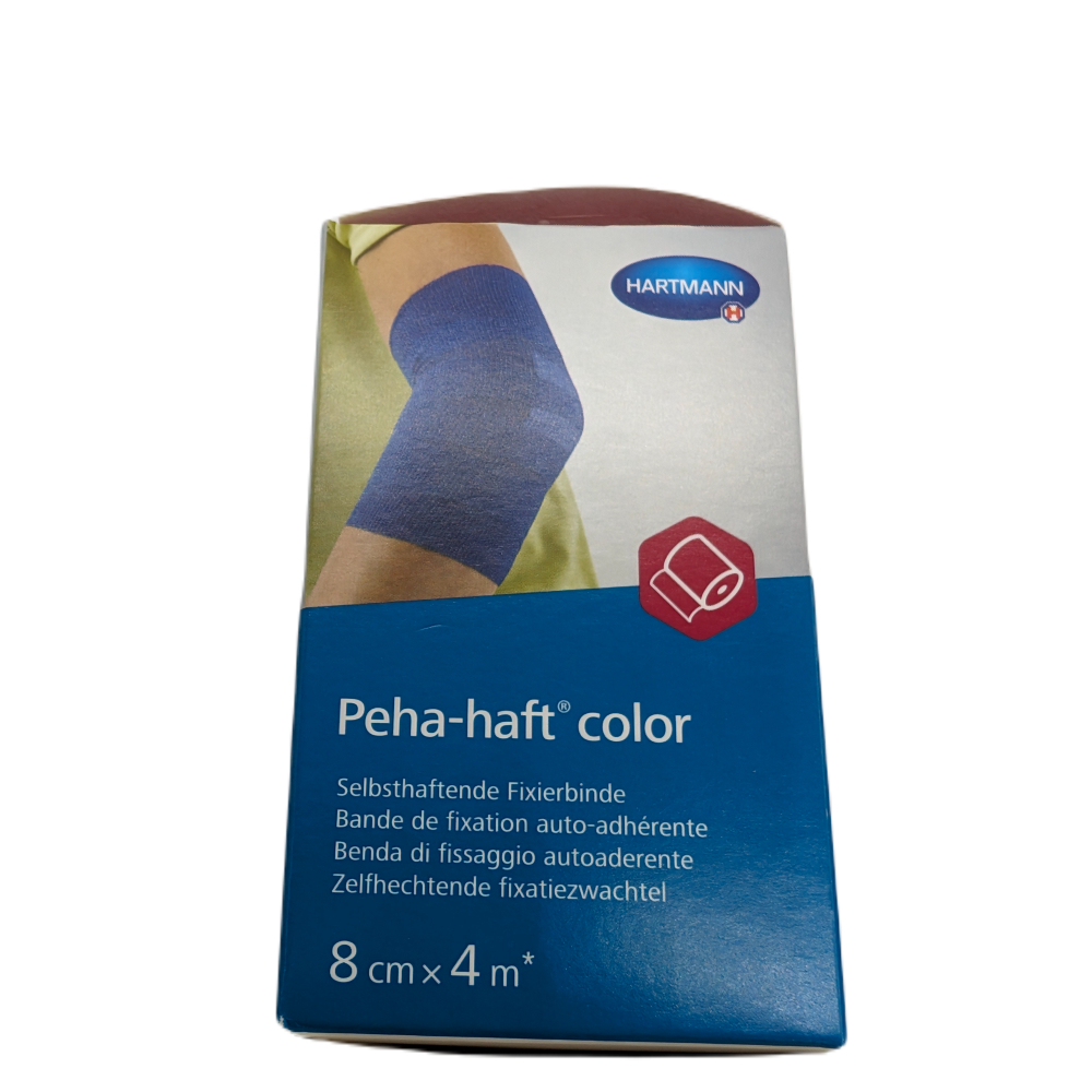 Die kohäsive Fixierbinde Hartmann Peha-Haft Color in Blau, mit einer Größe von 4 m Länge und 8 cm Breite, ist ein hochwertiges medizinisches Produkt zur sicheren Fixierung von Verbänden, Schienen oder Polstern. Diese Binde haftet selbstklebend auf sich selbst, ohne dabei Haut, Haare oder Kleidung zu verkleben. Die blaue Farbe bietet eine klare Unterscheidung von anderen Verbänden oder Materialien. Dank ihrer Elastizität passt sich die Binde optimal den Körperkonturen an, ohne die Bewegungsfreiheit einzuschränken. Die Hartmann Peha-Haft Color Binde ist sowohl für den professionellen als auch für den häuslichen Gebrauch geeignet und bietet eine zuverlässige Fixierung bei gleichzeitigem Tragekomfort.