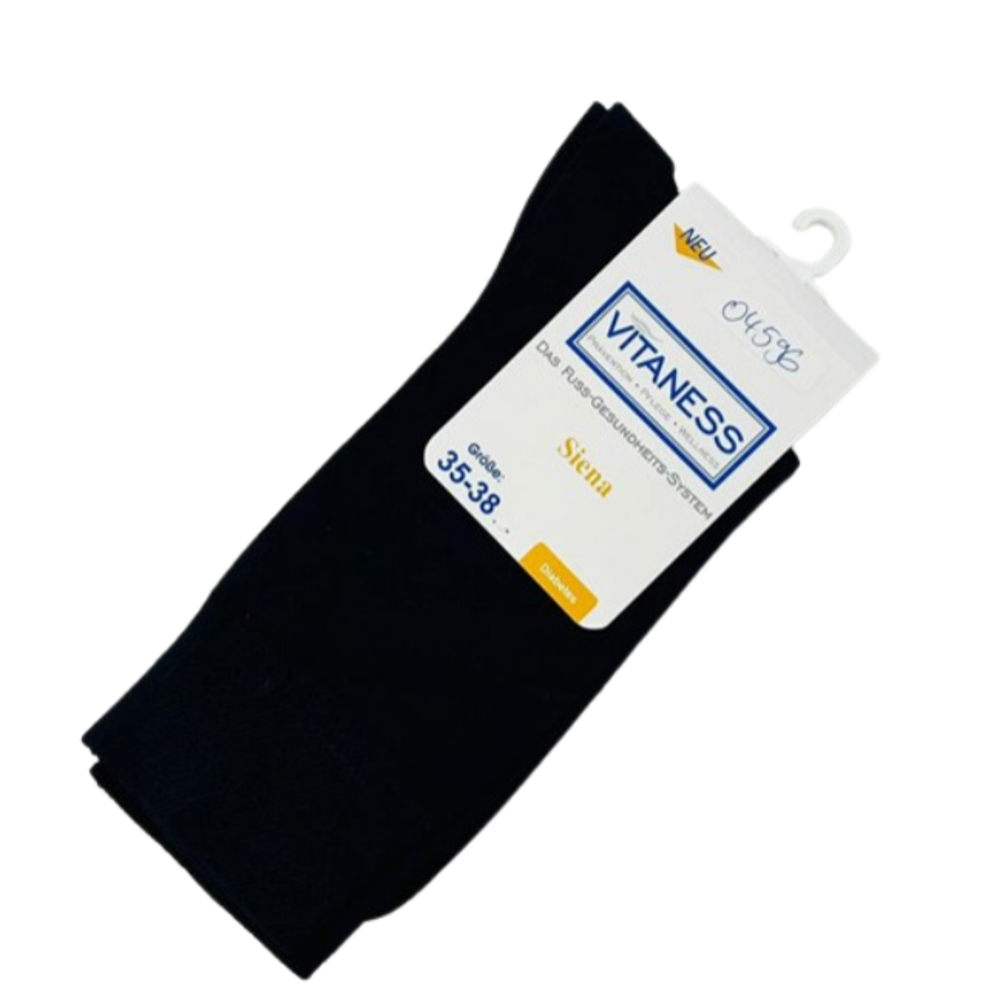 Die VITANESS Siena Diabetiker-Socke in Marineblau, Größe 35-38, ist speziell für Menschen mit Diabetes entworfen. Die Socken bieten eine weiche, nahtlose Konstruktion und ein elastisches Bündchen für maximalen Komfort. Mit einer besonders feinen Baumwollmischung und einer speziellen Sohlenpolsterung bietet sie Schutz vor Druckstellen und sorgt für eine gute Durchblutung der Füße.