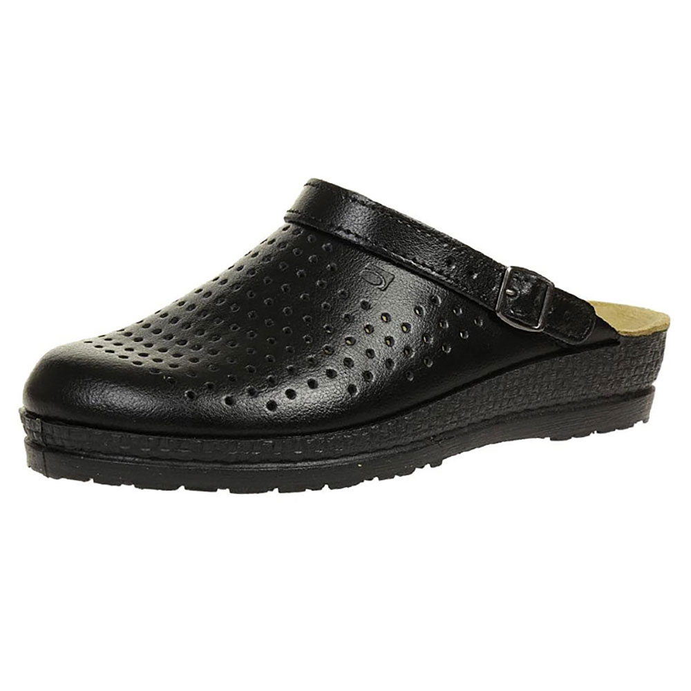 Bequemer Damen-Clog von Rohde mit ergonomisch gepolstertem Tieffußbett für optimalen Tragekomfort. Der verstellbare Umlegeriemen bietet sicheren Halt. Dezentes Design mit luftiger Perforierung für ein angenehmes Fußklima. Aus Leder mit Synthetiksohle.